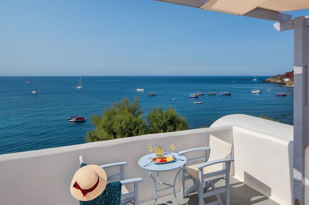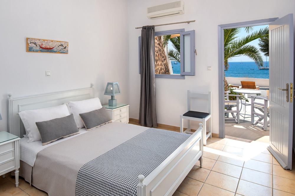 Die 17 Zimmer im traditionellen kykladischen Stil sind das Herzstück des Hotels. Jedes Zimmer verfügt über einen eigenen Balkon mit Meerblick – morgens beim Erwachen das Rauschen der Ägäis zu hören, ist unbezahlbar. Die Zimmer sind tadellos gepflegt, mit schallisolierten Wänden, Klimaanlage (kostenlos), Kühlschrank, Safe, Flachbildschirm und Haartrockner ausgestattet. Das tägliche Reinigungsservice sorgt dafür, dass man sich rundum wohlfühlt. Gäste beschreiben ihre Zimmer immer wieder als gemütlich, sauber und überraschend grosszügig für den Preis.