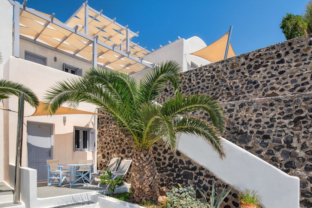 ist eines der traditionellen Häuser auf Santorini – und man spürt die gewachsene Seele des Ortes sofort. Die herzliche Atmosphäre wird durch das aufmerksame Team getragen, das keine Frage unbeantwortet lässt. Gratis WLAN, ein ruhiger Garten, eine kleine Bibliothek sowie ein gemütlicher Lounge-Bereich sorgen dafür, dass man sich sofort wie zuhause fühlt.