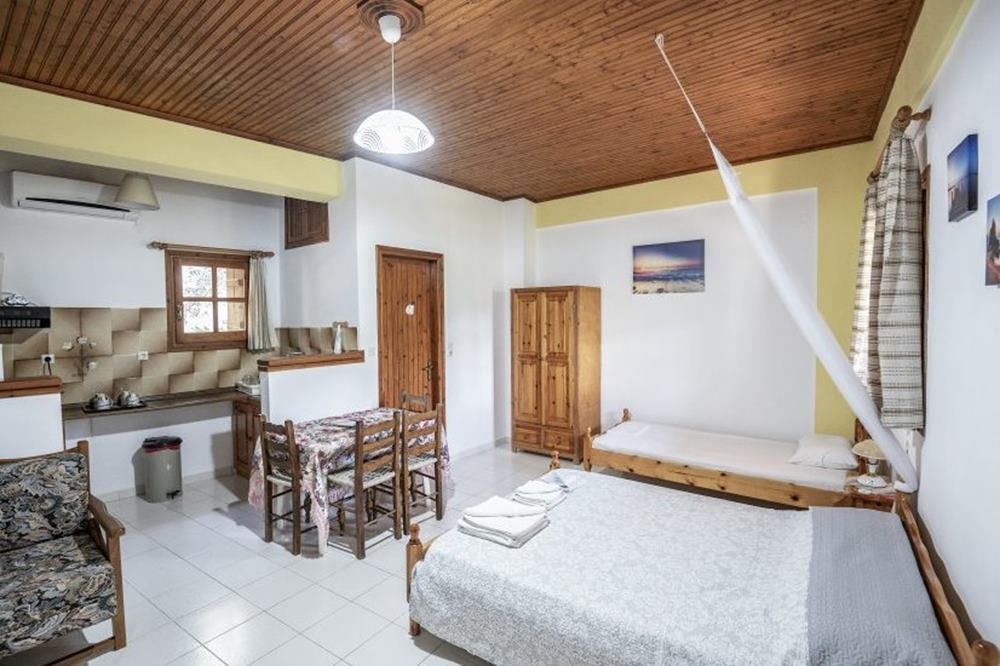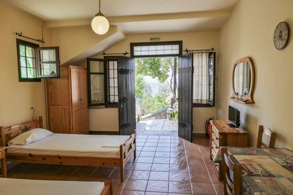 - Nicht inbegriffen: Nur bei Unterkunft im Meersichtzimmer Haupthaus: GR-Klimataxe, € 21 pro Zimmer/Woche ● Nur bei Unterkunft im Zimmer eines Nebenhauses: Benützung Swimmingpool € 5 pro Tag/Person (im Haupthaus inklusive).