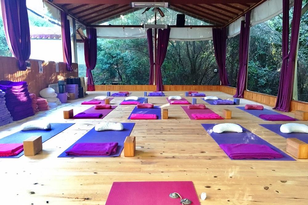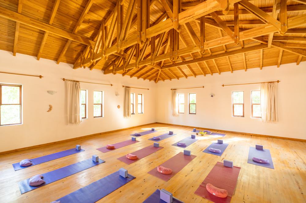 Mittelpunkt der Anlage bildet das Haupthaus – ein idealer Ort, um gemeinsam zu Essen, Trinken und zu Lachen. Zur Verfügung steht ein gemütlicher Aufenthaltsraum mit Bibliothek, Sofas, einem Cheminée und 2 weiteren Öfen. Vor dem Haus liegen der Swimmingpool und die grosse Holzterrasse, beide mit fantastischem Meerblick. Im Garten finden sich viele lauschige Schattenplätze mit Hängematten sowie einige Kösk (Pavillons). Die ebenerdigen Wohnbungalows liegen locker verteilt auf dem grossen, üppig blühenden Grundstück. Zur Anlage gehören auch zwei beheizbare Yoga- Hallen (80m², 120m²) sowie eine offene Yogaplattform, Seminarräume sowie ein Bio-Garten und -Gewächshaus, eine eigene Bio-Kläranlage und Solar-Wasseraufbereitung. ◼ Rauchen: Die gesamte Anlage ist nicht zuletzt aus Sicherheitsgründen (Wald-/Buschbrände) rauchfrei. Dies gilt auch für sämtliche Innenräume bzw. Gästezimmer. Ausnahme bildet ein geschützter "Rauchplatz" im Freien.