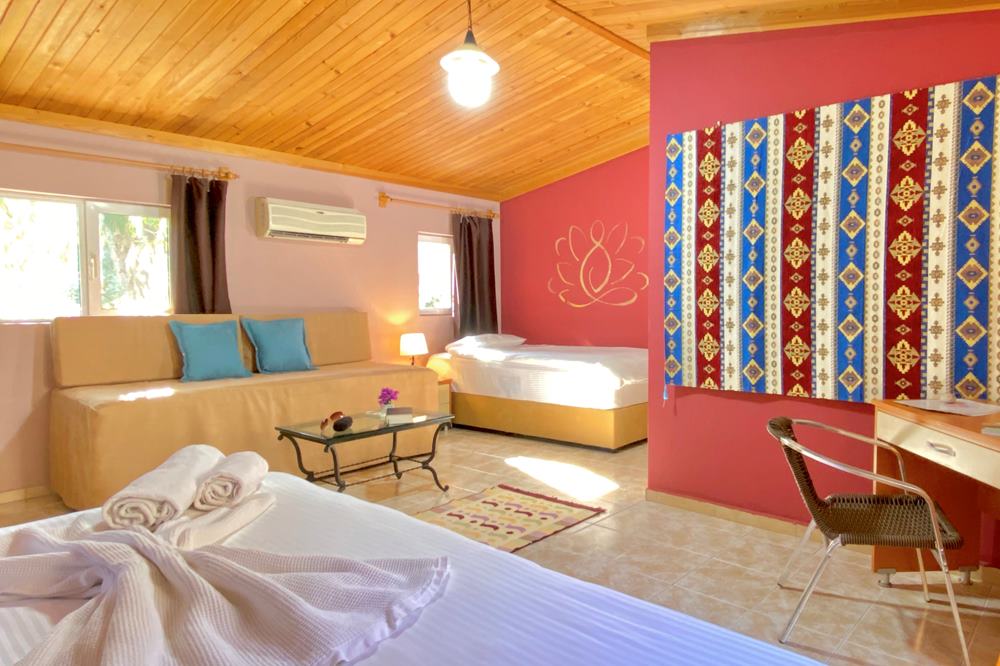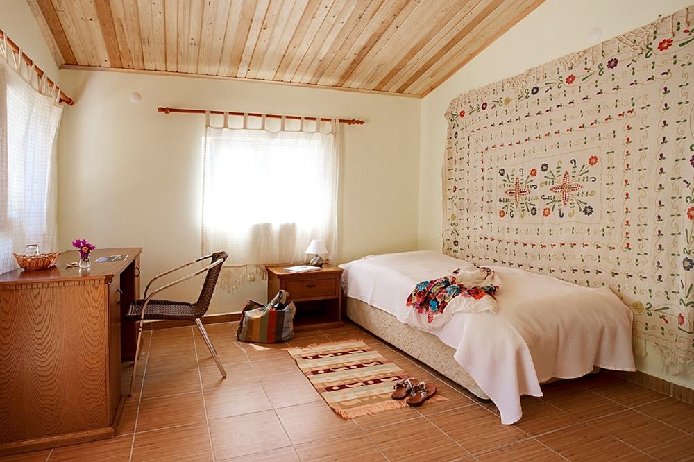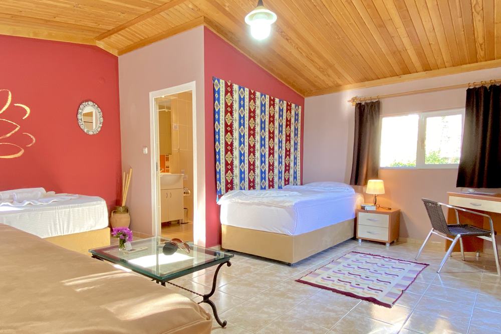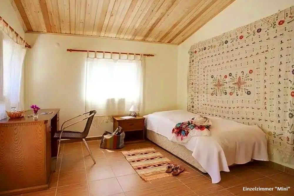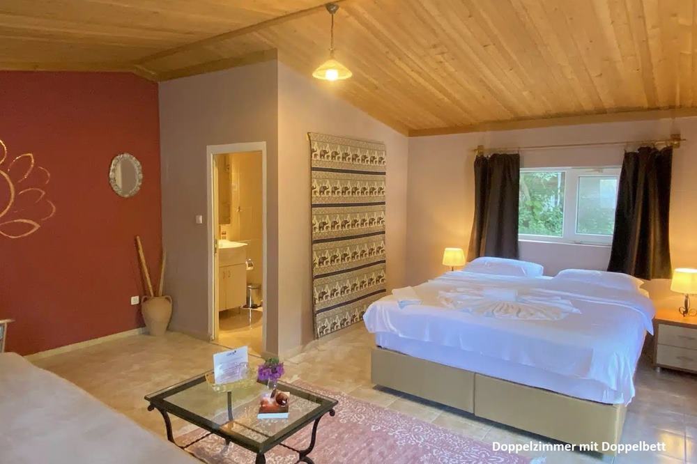Sie schlafen so tief und fest wie lange nicht mehr! Nur die Hähne krähen manchmal und ab und zu bellt ein Hund. Sie geniessen die Stille und fühlen sich wohl und sicher in ihrem Zimmer. Es gibt sogar richtige Bettwäsche und "europäische" Oberbetten, was ist in der Türkei sonst nicht üblich ist. Frische Handtücher gibt es, so oft Sie mögen. Und natürlich hat es in jedem Zimmer eine Klimaanlage (kostenlos), die in der kühleren Jahreszeit auch heizen kann. Die Zimmer werden täglich gereinigt. Warmwasser zum Duschen erzeugt die hauseigene Solaranlage. Gratis WLAN nur im Haupthaus und auf der Poolterrasse In allen Zimmern ist stromloses Schlafen (digital Detox) ohne jeglichen Elektrosmog möglich.